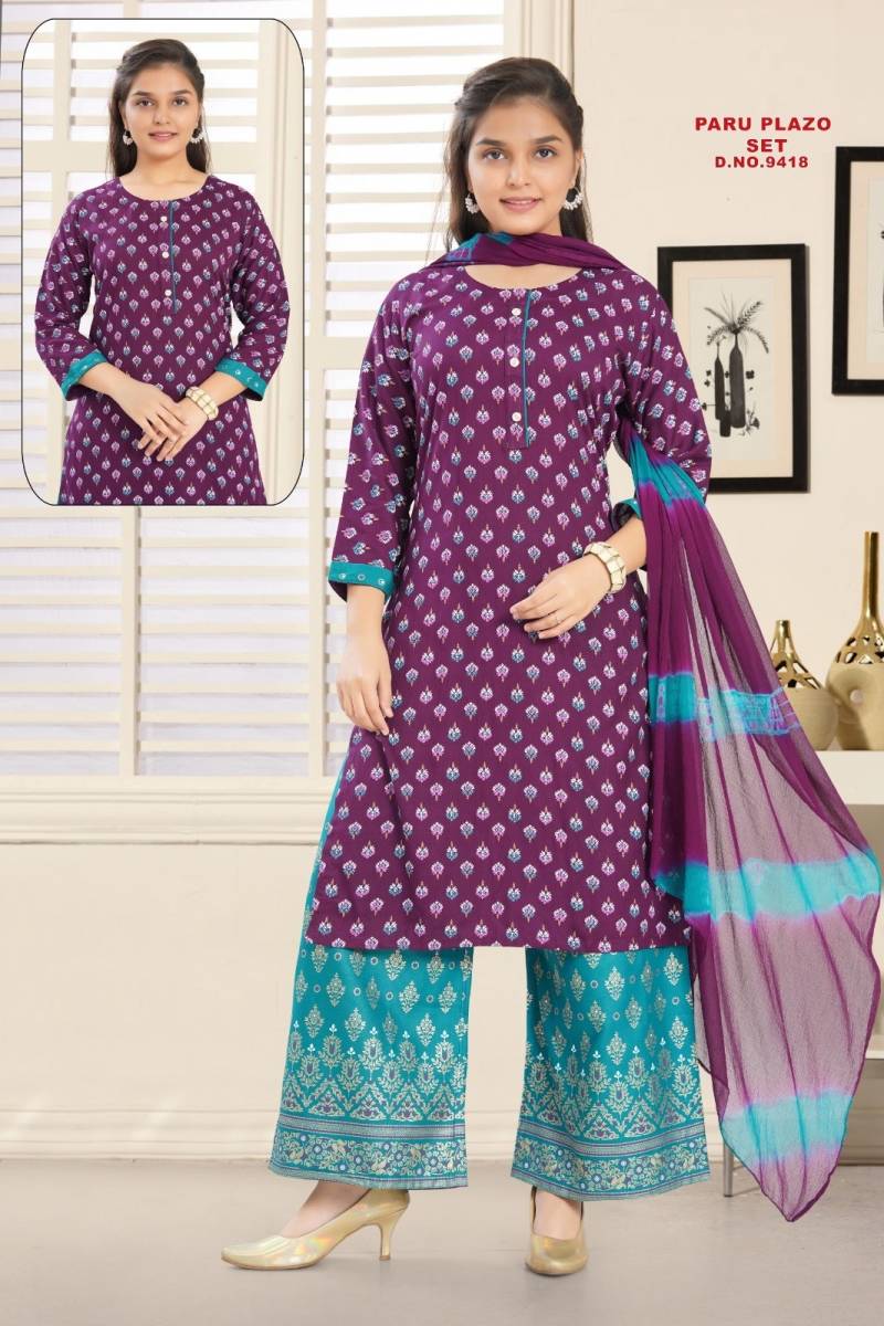 | Catalog Name | Paru Plazo Set 9418 Printed Kids Wear Kurti And Bottom Dupatta Collection |