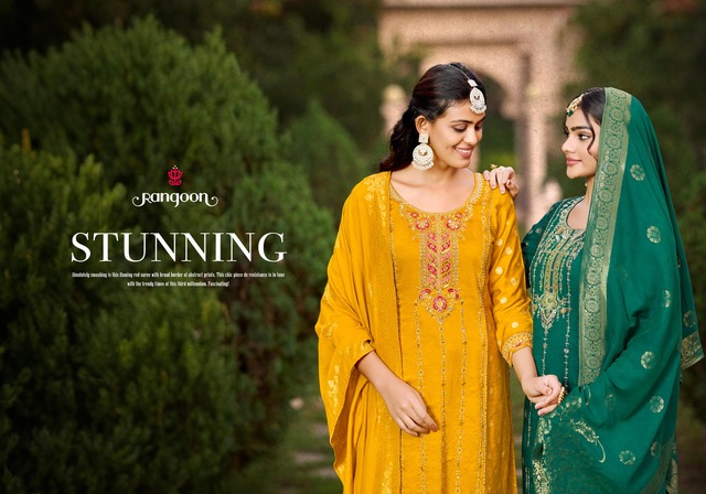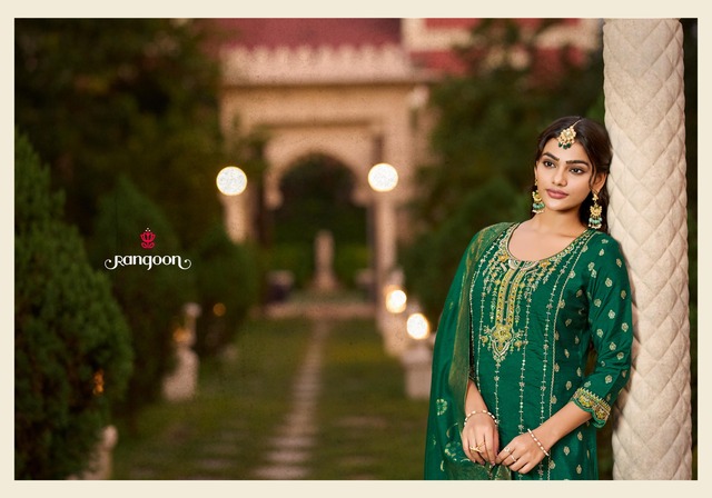 Viscose khatli work kurti pant and dupatta – Rangoon Sonika, crafted in premium jacquard viscose fabric with elegant embroidery. Perfect for festival & wedding wear. Get best wholesale price with worldwide shipping. Shop Now at FashionExport.
