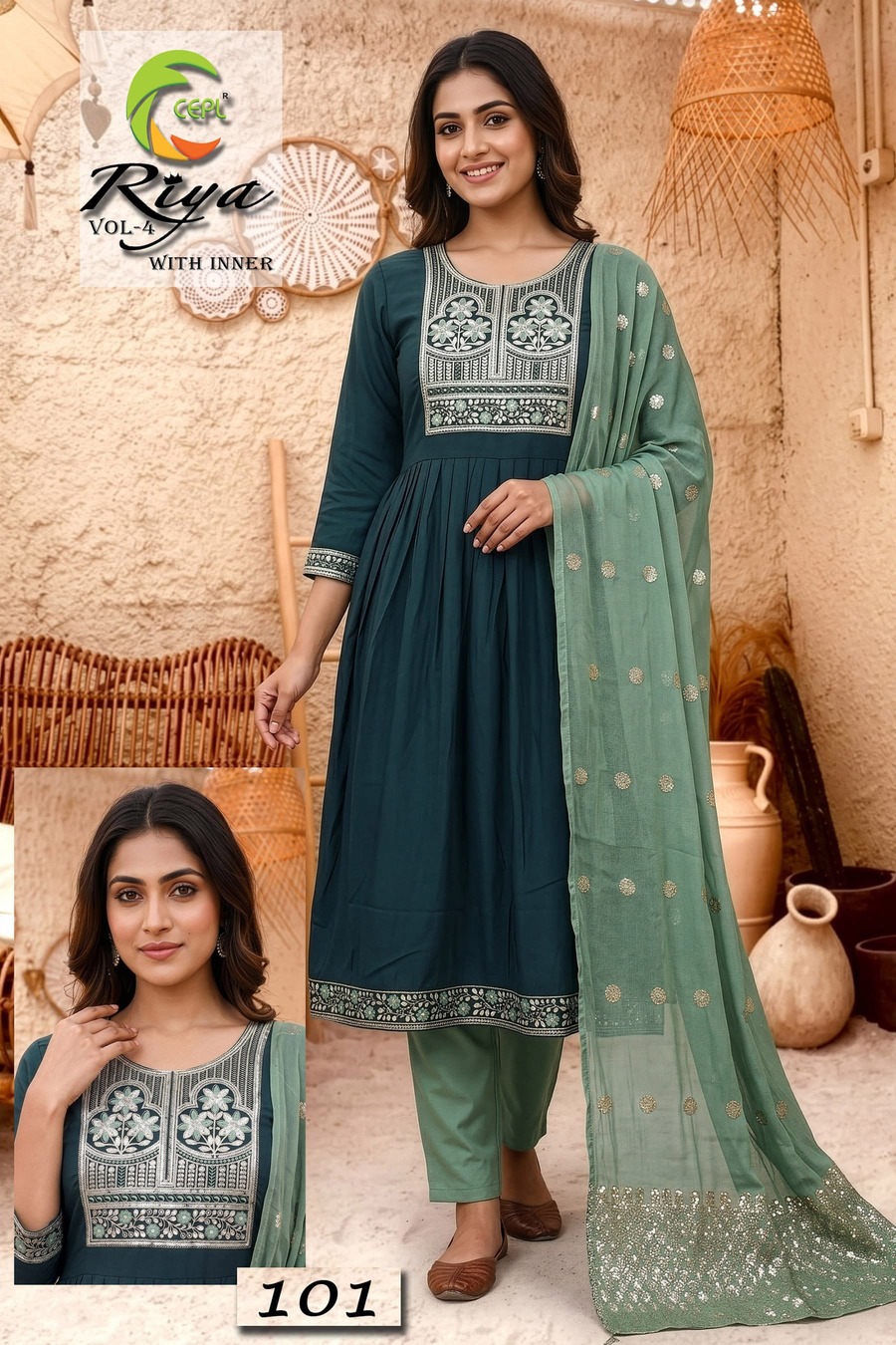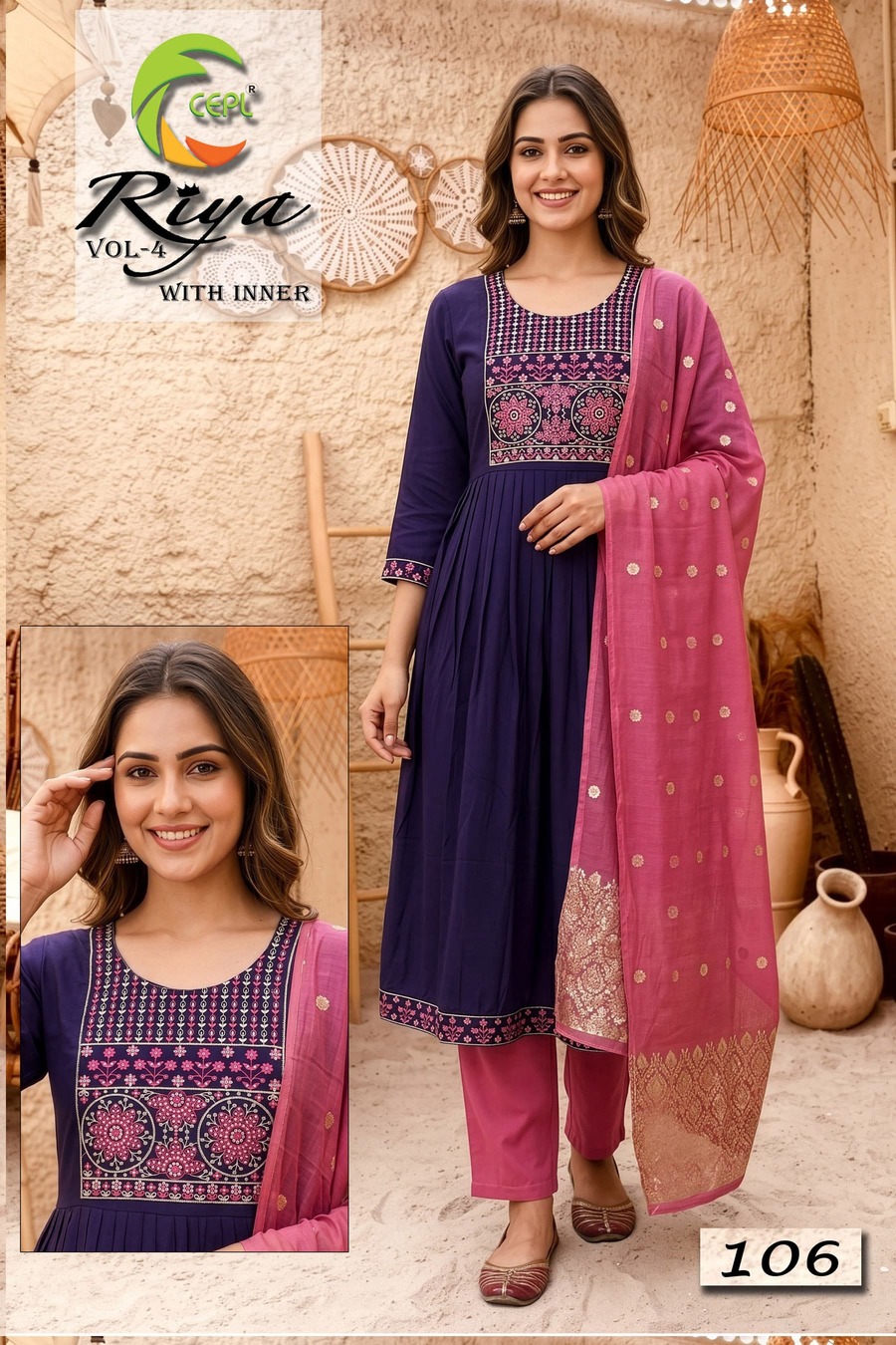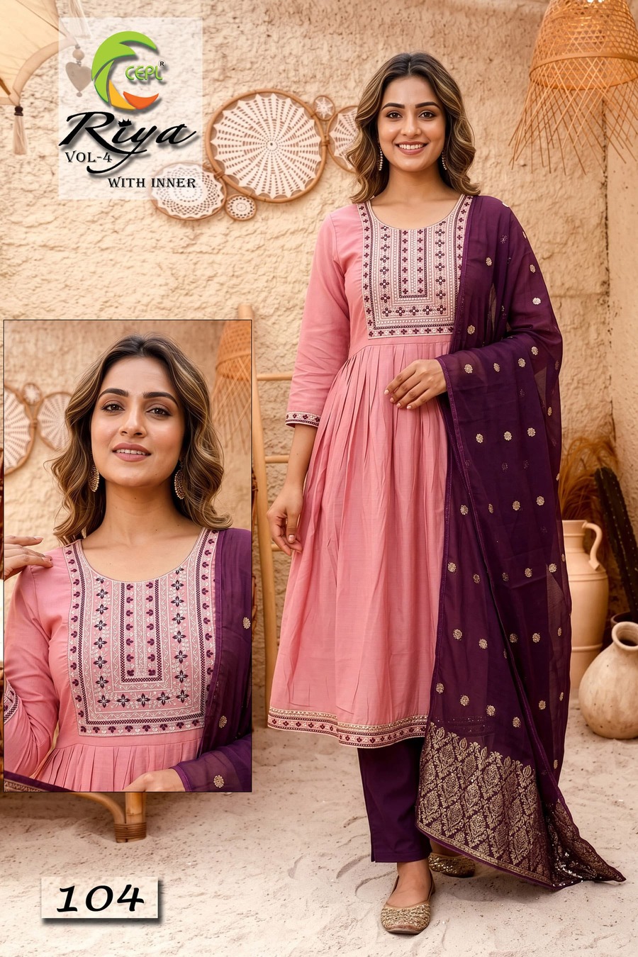 Retailers and wholesalers benefit from stocking high-demand ethnic wear categories. The Riya Vol 4 Roman Silk Anarkali Kurti With Bottom Dupatta Collection is a reliable choice for businesses focusing on anarkali kurti wholesale price segments.