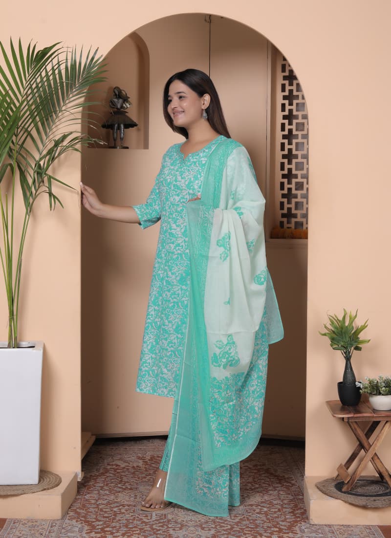 | Catalog Name | Saina Vol 4 Cotton Straight Kurti Pant And Dupatta Collection Collection |