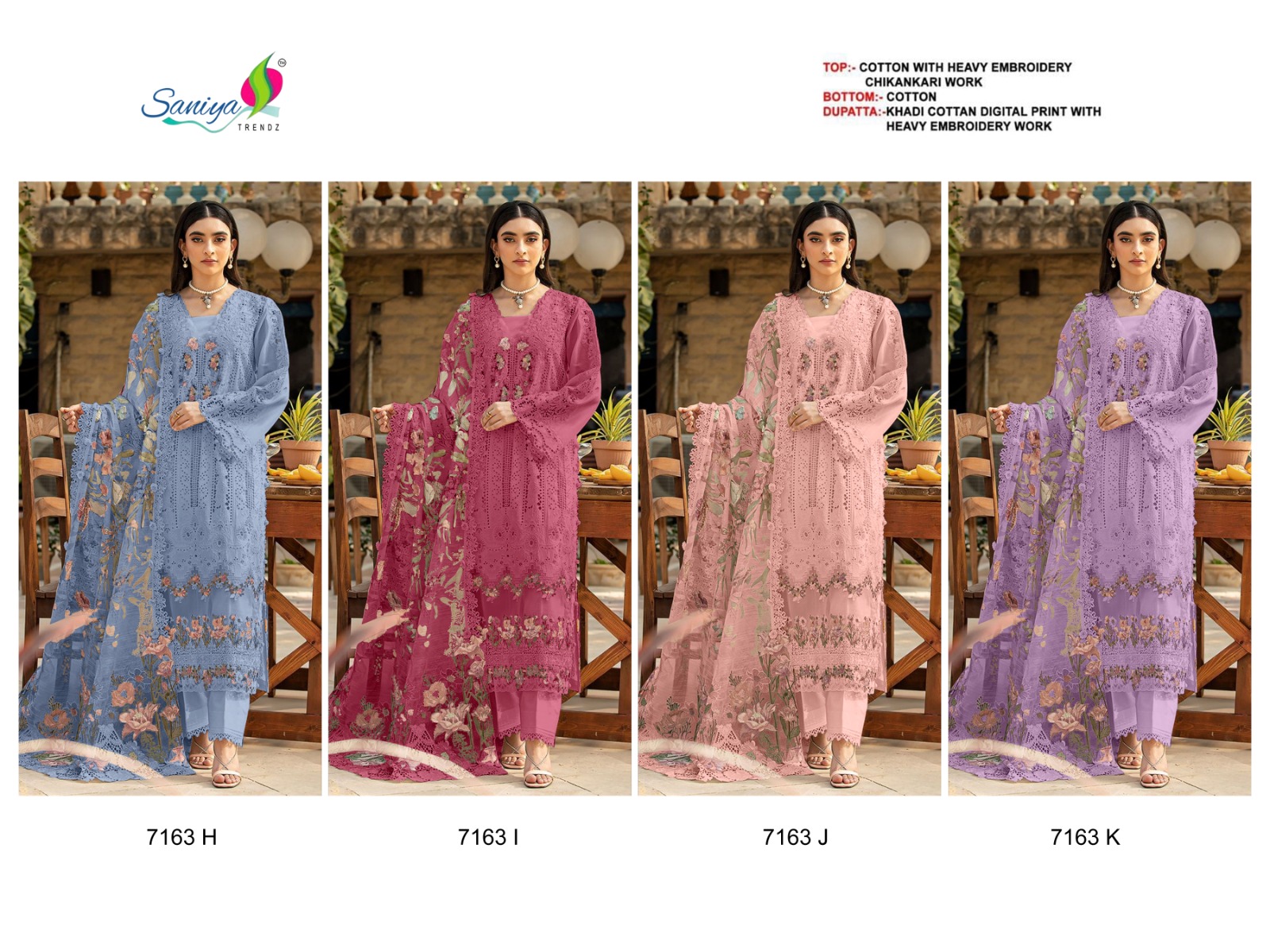 | Catalog Name | Saniya 7163 H To K Embroidered Chikankari Work Salwar Suits |