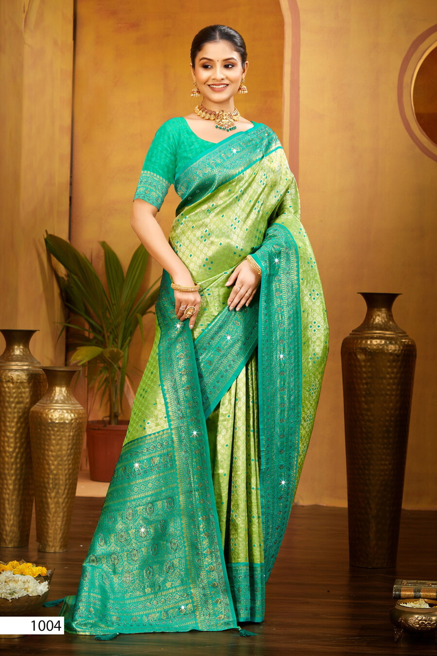 Saroj Fairmont Silk Saroski Vol 4 presents an exclusive Kanjivaram Silk Saree Collection designed for luxurious festive and wedding wear. Crafted from premium Fairmont silk with elegant Swarovski embellishments, each saree offers rich traditional weaving, vibrant colors, and a grand pallu that exudes sophistication. Perfect choice for brides, special occasions, and premium ethnic styling.