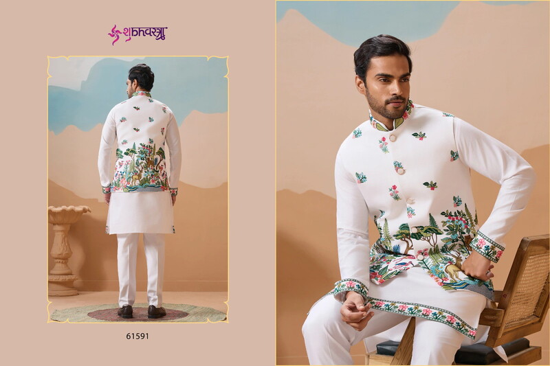 | Catalog Name | Shubhvastra Vantara Wedding Wear Mens Kurta Bottom Koti Collection |