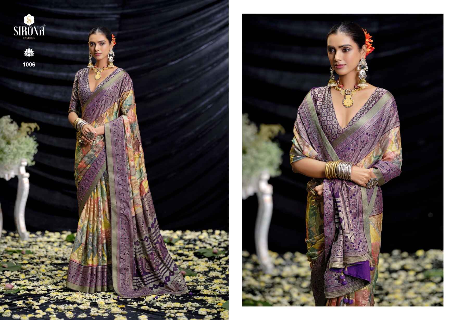 | Catalog Name | Sirona Rangat Moss Brasso Printed Saree Collection |
