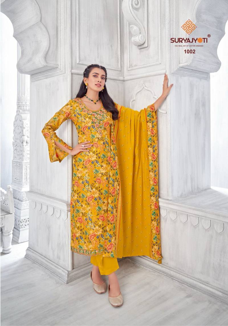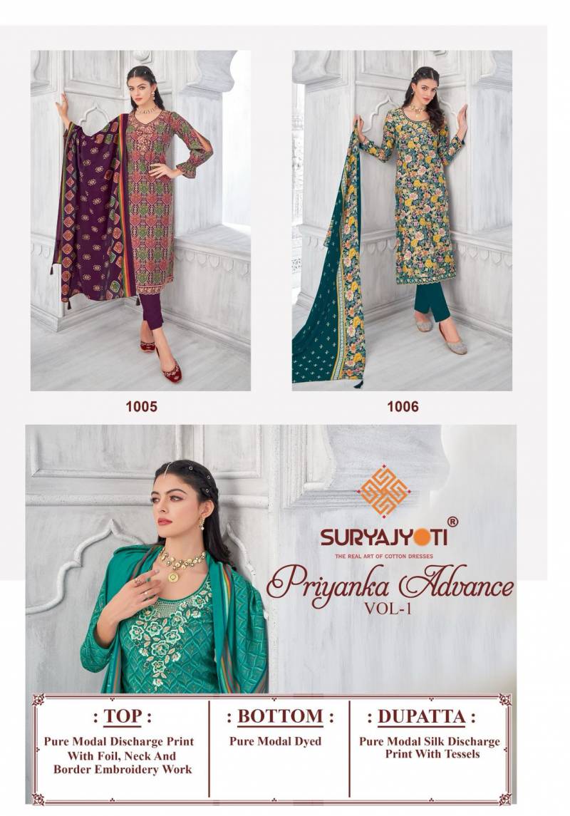 | Catalog Name | Suryajyoti Priyanka Advance Vol 1 Modal Discharge Printed Dress Material |