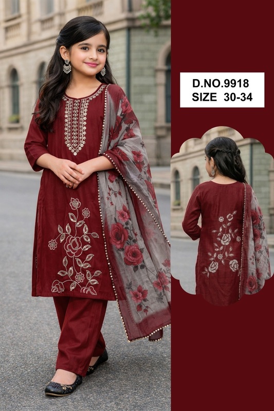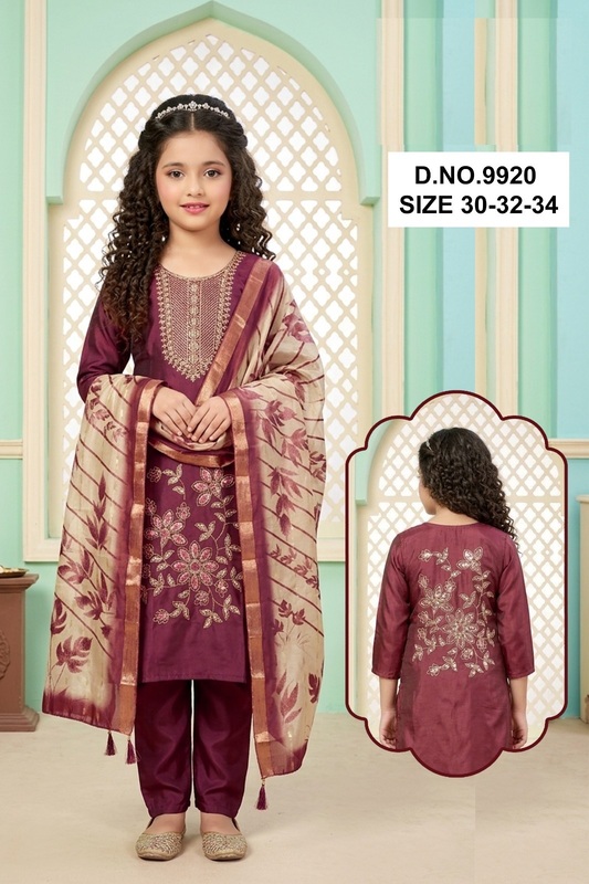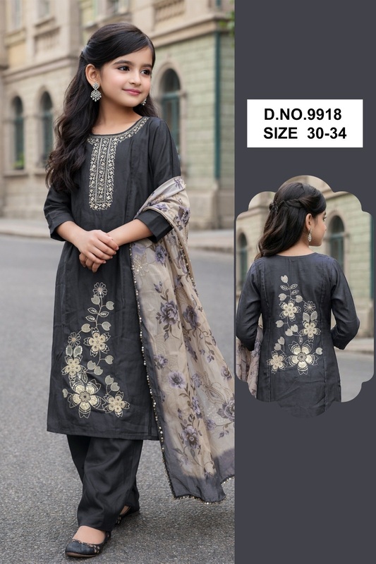 Color and design play a major role in kids wear selection. The Tanni 9918 And 9920 Roman Silk Kids Wear Kurti Set Collection offers vibrant colors and attractive patterns that appeal to both kids and parents. Customers browsing kids wear wholesale & traders in malaysia collections often choose outfits with lively and cheerful designs.