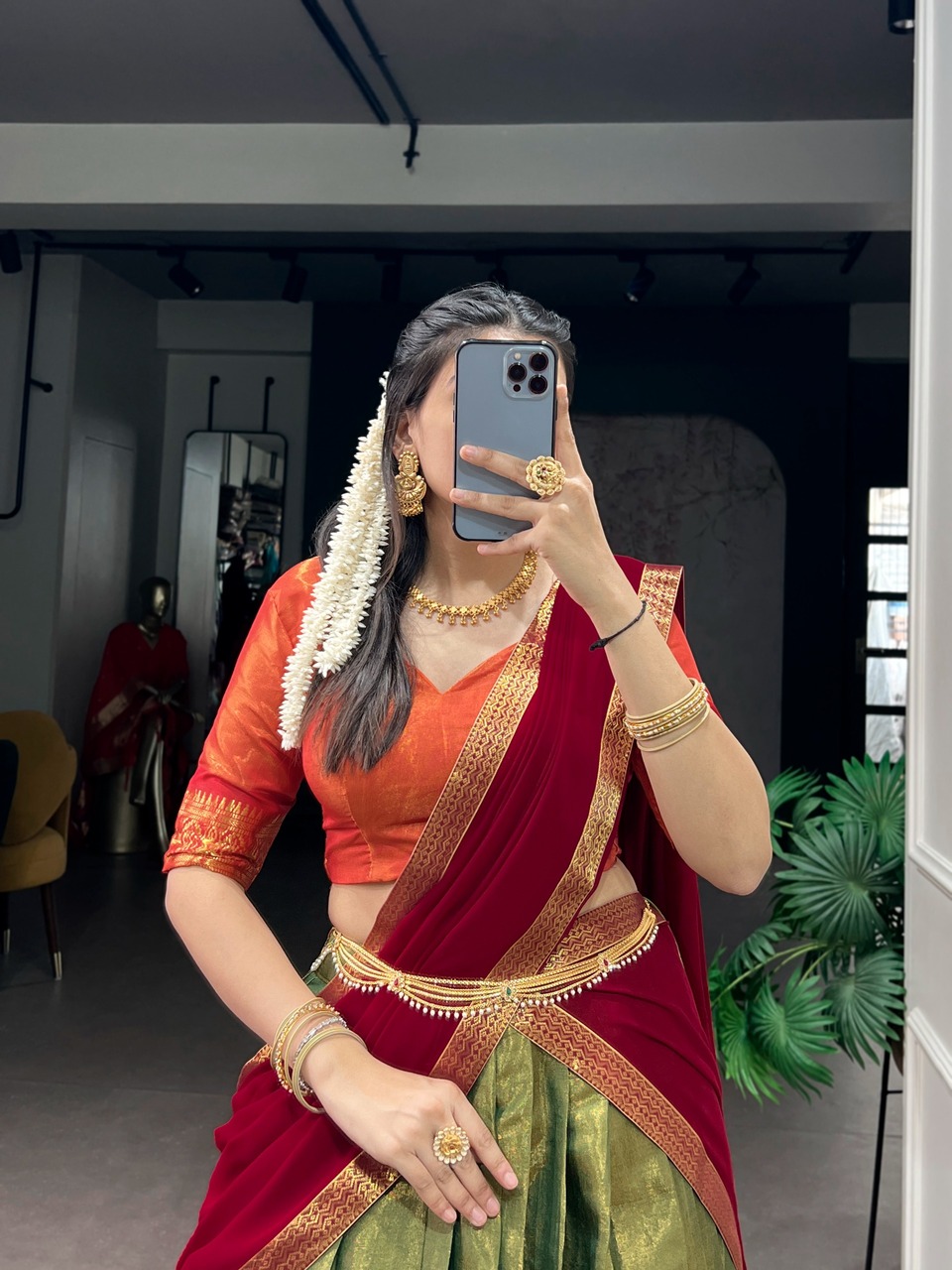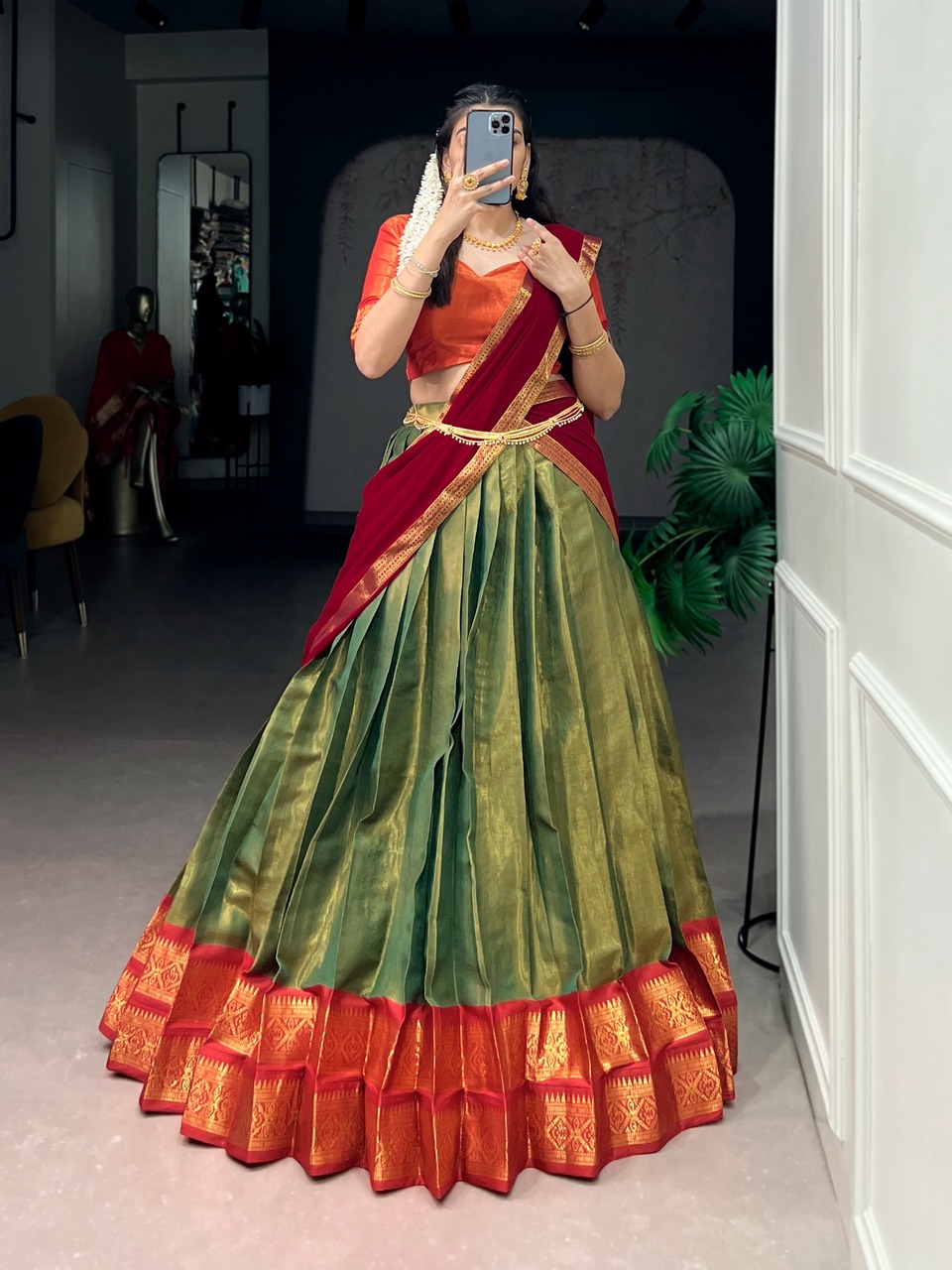 This collection is specially designed to reflect the cultural beauty of south indian lehenga choli for women, making it ideal for weddings, festive celebrations, and traditional ceremonies. The elegant weaving patterns and vibrant color combinations highlight the beauty of traditional silk craftsmanship. Businesses sourcing at competitive kanchipuram silk lehenga choli wholesale price rates can attract customers looking for luxurious and authentic South Indian outfits.