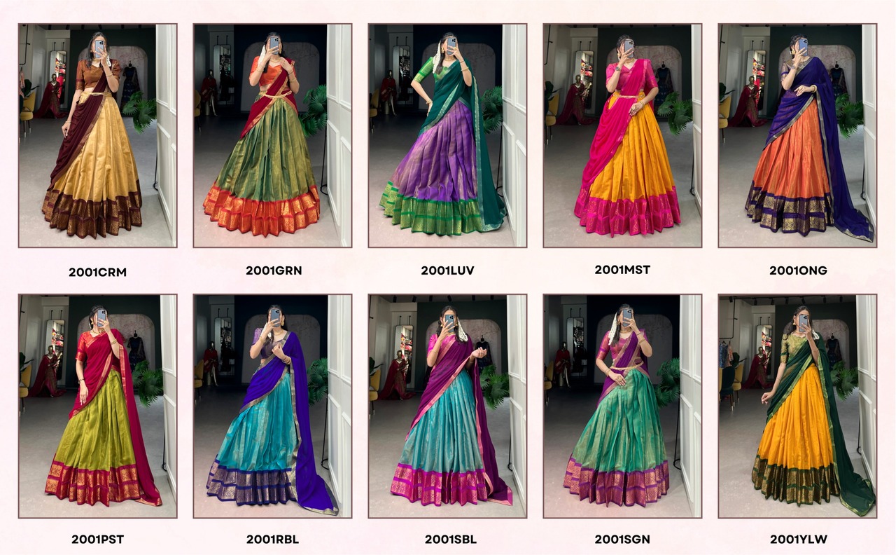 The Taraa L 2001 Kanchipuram Traditional Lehenga Choli collection features detailed craftsmanship and premium finishing, making it suitable for high-end ethnic wear stores. Retailers dealing in south indian lehenga choli for women collections can benefit from adding this elegant range to their premium category. The demand for traditional silk lehengas remains strong, ensuring consistent sales and repeat customers.