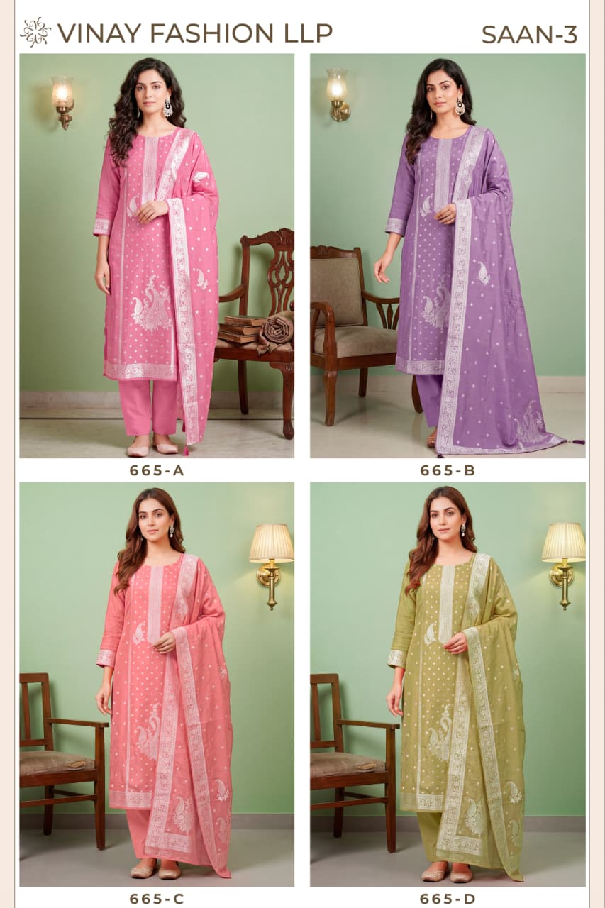 The Vinay Kuleesh Saan Vol 3 Viscose Salwar Kameez Collection combines comfort, elegance, and modern design, making it a strong addition to any ethnic wear collection. With premium viscose fabric and trendy patterns, this collection meets the expectations of customers looking for stylish and comfortable outfits.