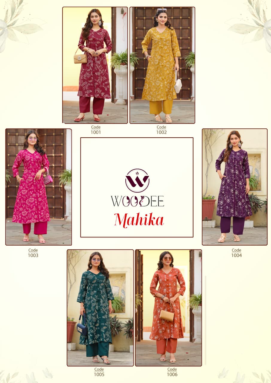 The Woodee Mahika Viscose Printed Kurti With Bottom Collection is a stylish and comfortable addition to modern ethnic wear categories. Designed with premium viscose fabric and elegant printed patterns, this collection perfectly balances comfort and contemporary fashion. Retailers seeking competitive printed kurti with bottom wholesale price options can include this collection to meet the increasing demand for trendy ready-to-wear outfits.
