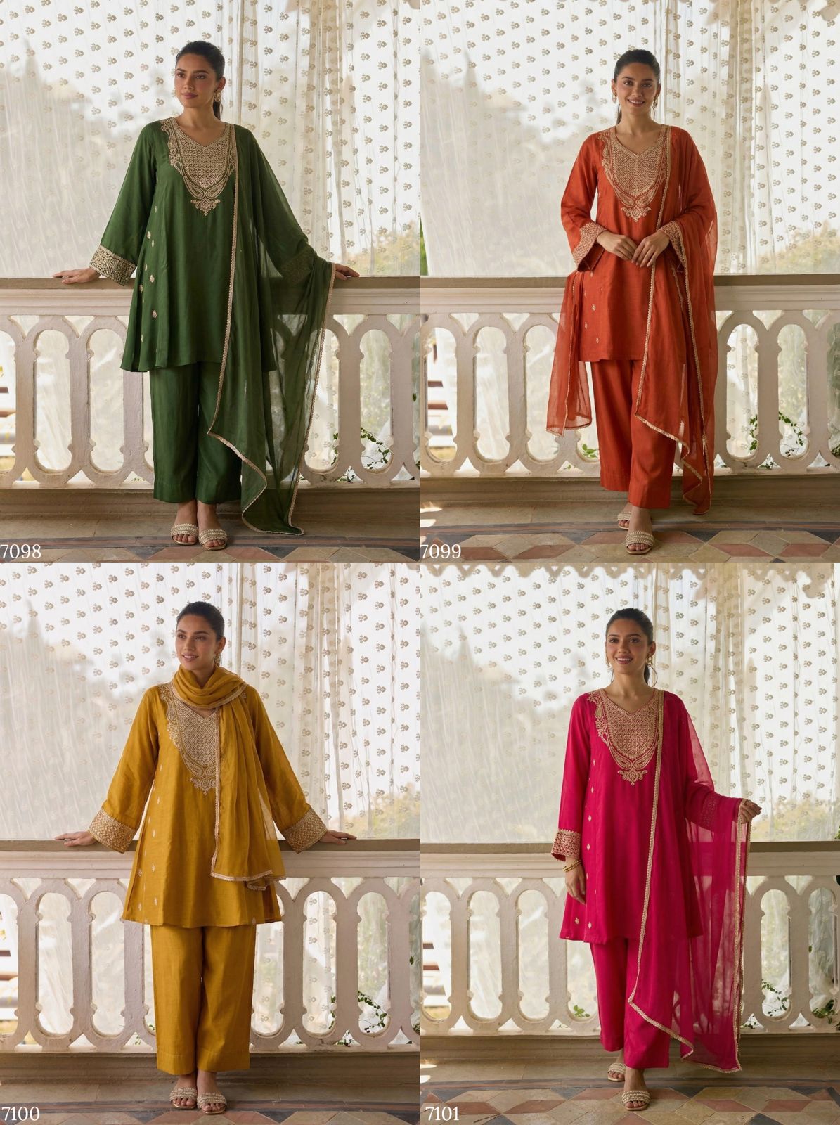 Designer kurta sets with dupatta continue to be one of the most popular choices in ethnic wear due to their versatility, comfort, and stylish appearance. The Alizeh 7099 To 7101 Designer Kurta Set With Dupatta collection is carefully crafted to meet the growing demand for elegant daily and festive wear. This collection is an excellent choice for wholesalers, retailers, and boutique owners searching for premium ethnic outfits from trusted cotton kurti set wholesale suppliers in india.
