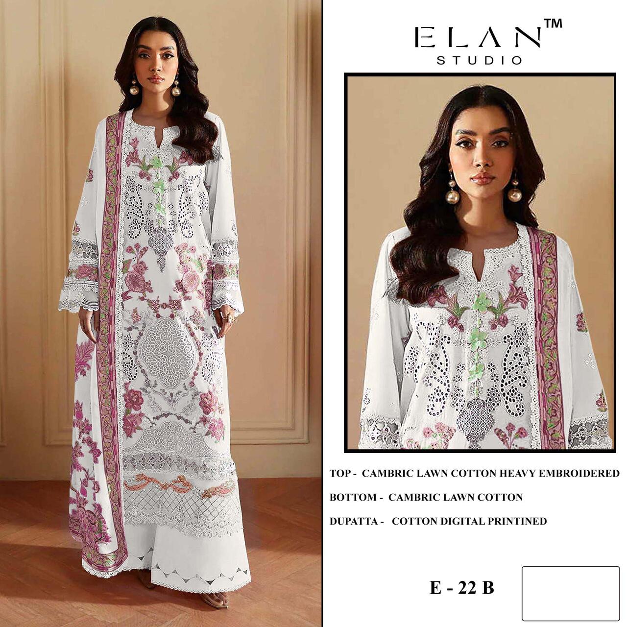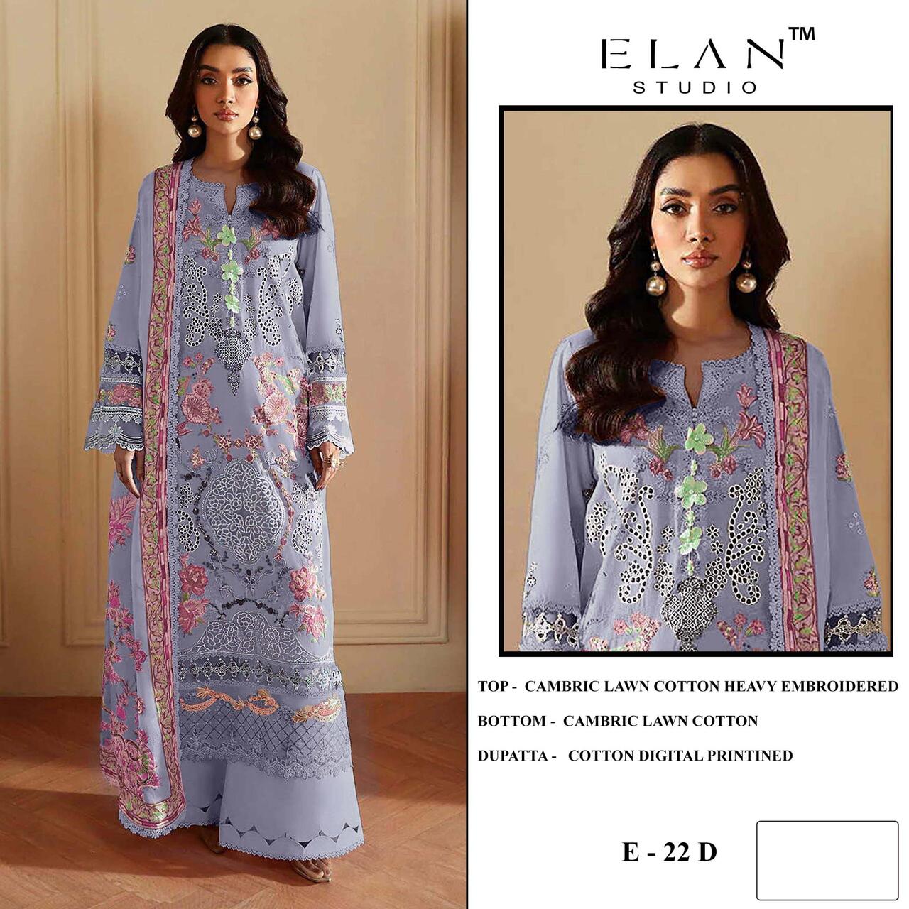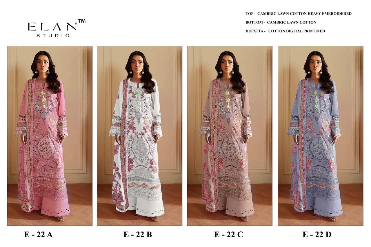 Retailers and wholesalers require collections that provide consistent demand and profitability. The Elan E 22 A To D Cotton Embroidered Pakistani Suits Collection is suitable for boutiques, online sellers, and garment showrooms. Buyers sourcing pakistani salwar kameez wholesale collections benefit from stylish designs that attract repeat customers.