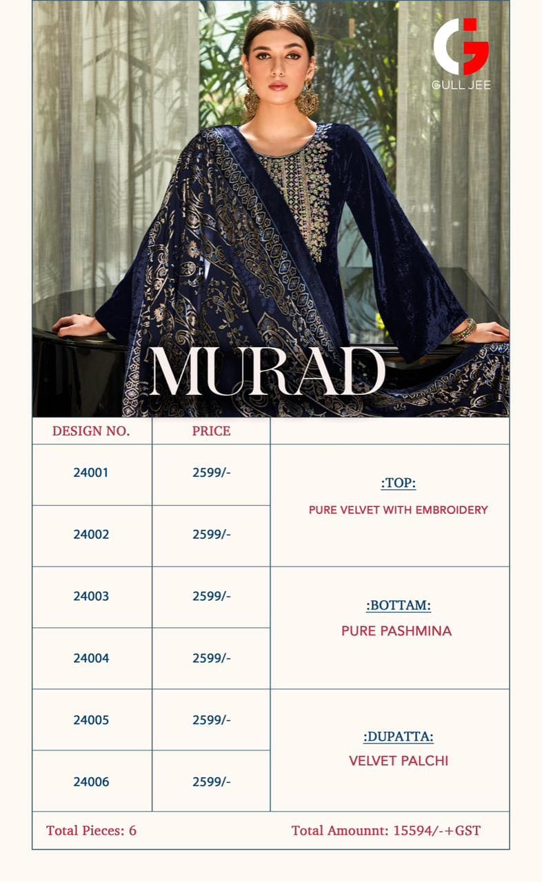 | Catalog Name | Gull Jee Murad Designer Salwar Suite Collection |