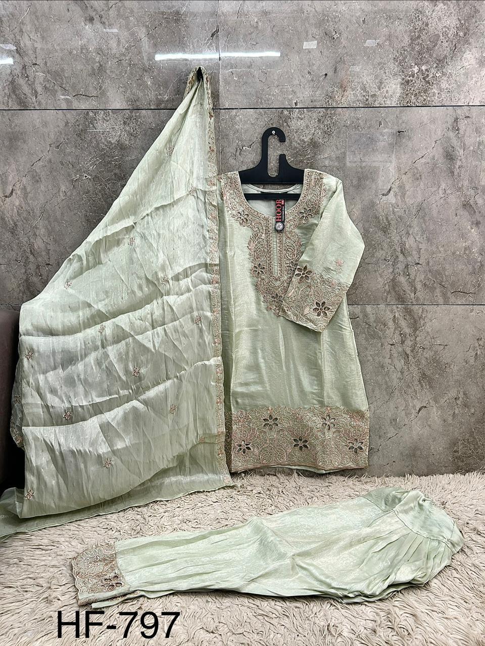 The Hoor Tex 797 A To D Embroidered Readymade Salwar Kameez Collection is designed to deliver elegance, comfort, and modern ethnic fashion in one complete outfit. Featuring stylish embroidery work and premium-quality fabric, this collection is ideal for festive wear, daily wear, and party occasions. Retailers and wholesalers searching for embroidered readymade salwar kameez wholesale options will find this collection highly suitable due to its growing popularity in both domestic and international markets.