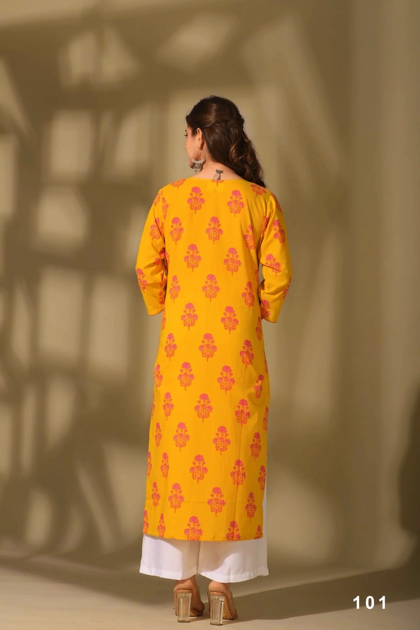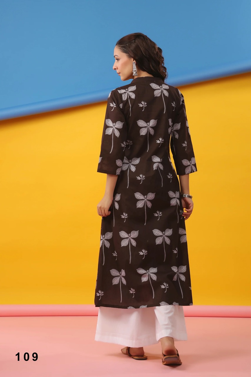 The highlight of this collection is its vibrant digital printing, which gives each kurti a fresh and modern appearance. Digital prints are known for sharp detailing and rich color finish, making the collection ideal for customers who appreciate fashionable yet practical clothing. Businesses sourcing at Cotton printed kurti wholesale price in india can offer a product that stands out in the competitive ethnic wear market. In a crowded catalog, Cotton printed kurti wholesale price in india helps position the line as a value-driven option.