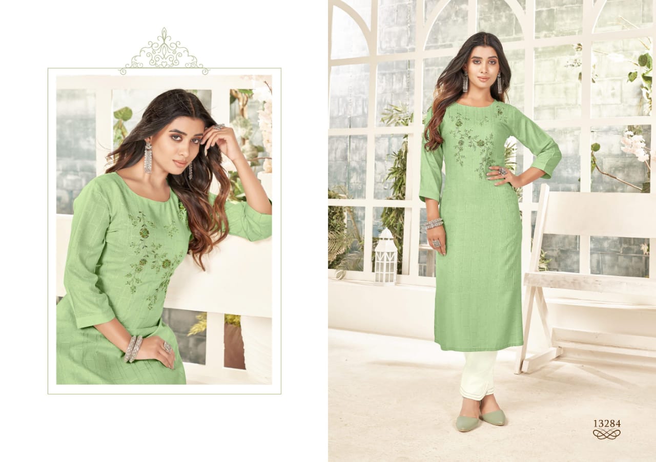 | Catalog Name | Kalaroop Elisa Fancy Rayon Kurti Collection |