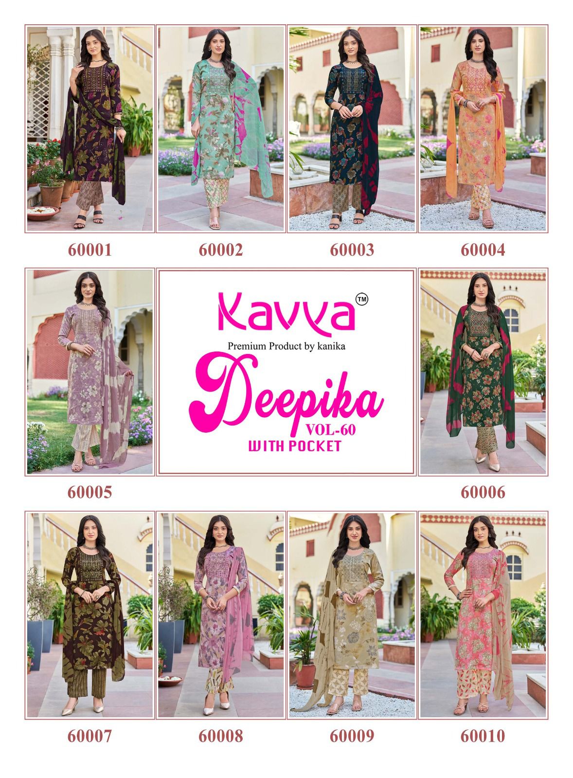 | Catalog Name | Kavya Deepika Vol 60 Embroidered Kurti With Bottom Dupatta |