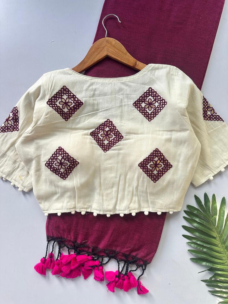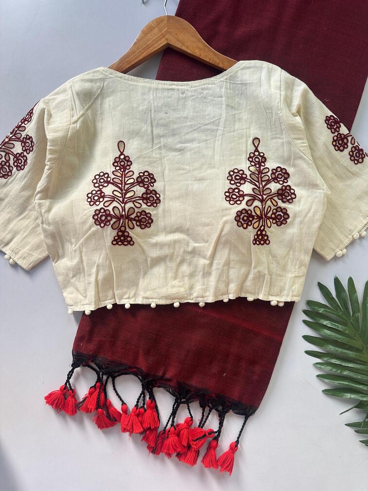 | Fabric Description | Saree/Blouse :- Khadi Cotton With Thread Work |
