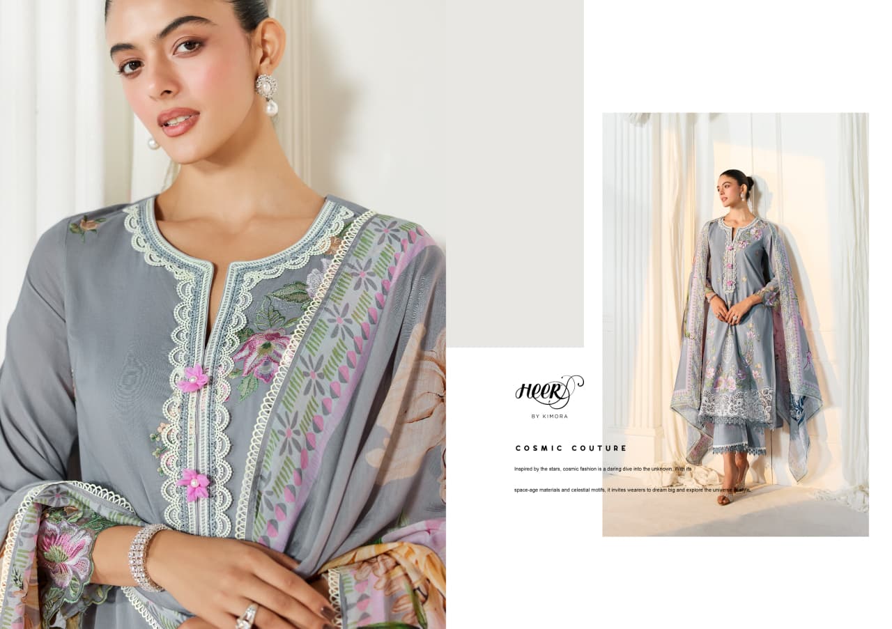 The Kimora Heer Baroque Vol 248 Lawn Cotton Salwar Kameez Collection offers multiple styling options suitable for different occasions.