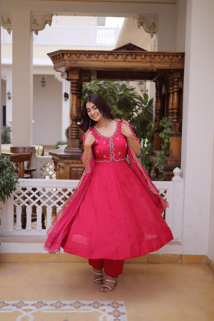 Mul Chanderi fabric ensures breathability and smooth texture, making it suitable for long-hour wear. Customers browsing embroidery work kurti set wholesale price collections usually choose lightweight materials that offer easy movement and stylish draping.