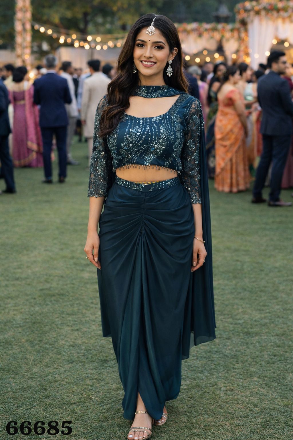 Sequence embellishments reflect light beautifully, making the outfit ideal for evening functions, receptions, and parties. High-quality stitching ensures that the decorative work remains intact even after multiple wears.