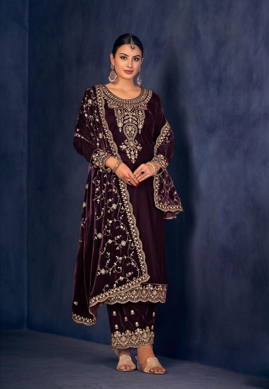 | Fabric Description | Velvet || TOP : PURE VELVET WITH HEAVY EMBROIDERY NECK DAMAN SLEEVES WITH CUTWORK | BOTTOM : PURE VELVET DYED SOLID WITH HEAVY EMBROIDERY WITH CUTWORK | DUPATTA : PURE VELVET WITH HEAVY EMBROIDERY FULL DUPATTA WITH CUTWORK BIG WIDTH(44 PANNA) |