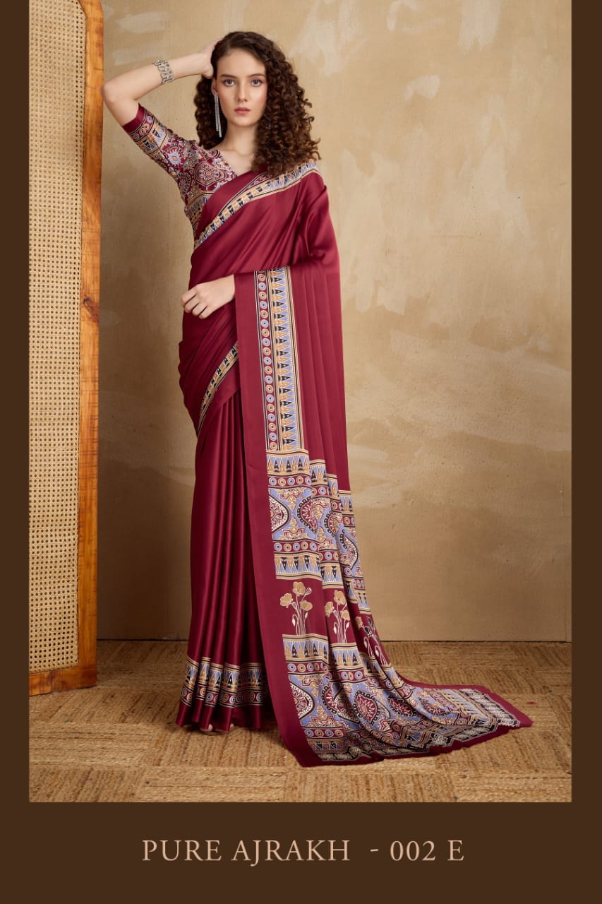 Selecting printed ajrakh saree wholesale price collections allows retailers to offer timeless ethnic fashion at competitive pricing. Ajrakh prints remain popular because they represent traditional art and craftsmanship. The Pure Ajrakh 002 A To E Ajrakh Printed Saree Collection helps businesses meet customer demand while maintaining attractive profit margins.