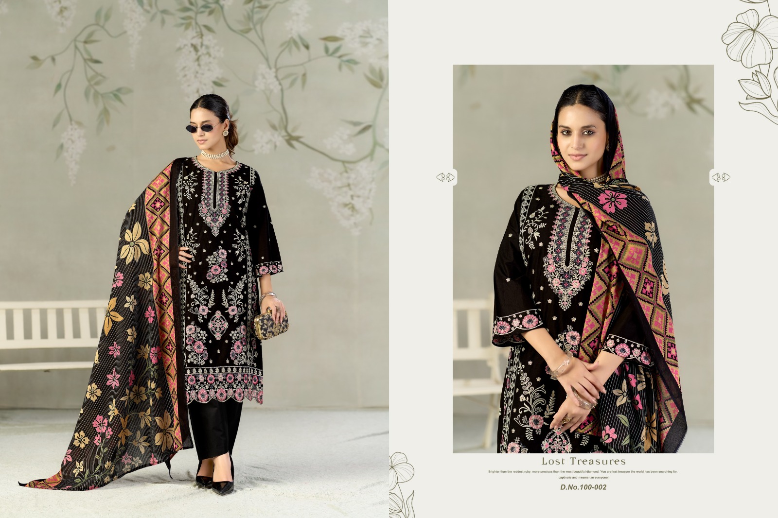 The Radhika Azara Rumaisha Lawn Cotton Designer Dress Material Collection is designed to offer a perfect balance of elegance, comfort, and modern ethnic styling. Crafted using premium Lawn Cotton fabric, this collection showcases stylish patterns that suit both traditional and contemporary fashion preferences. Retailers searching for designer dress material wholesale online options will find this collection highly suitable due to its stylish appearance and strong demand in the ethnic wear market.