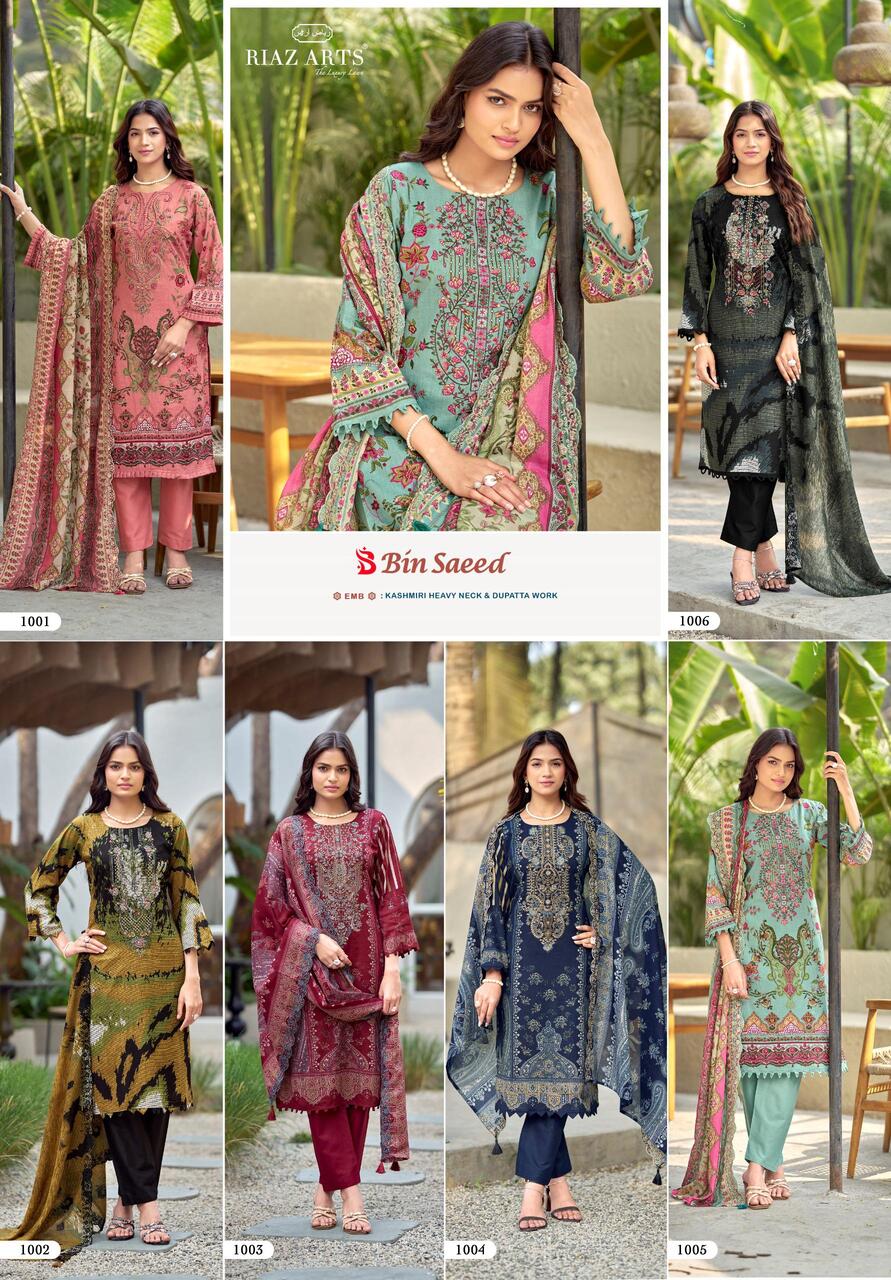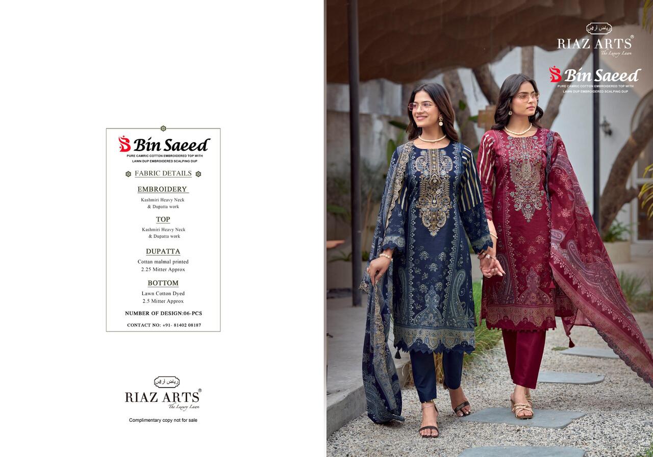 | Catalog Name | Riaz Arts Bin Saeed 01 To 06 Cotton Designer Dress Material |