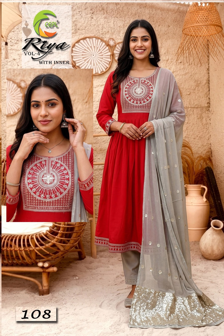 Retailers and wholesalers benefit from stocking high-demand ethnic wear categories. The Riya Vol 4 Roman Silk Anarkali Kurti With Bottom Dupatta Collection is a reliable choice for businesses focusing on anarkali kurti wholesale price segments.