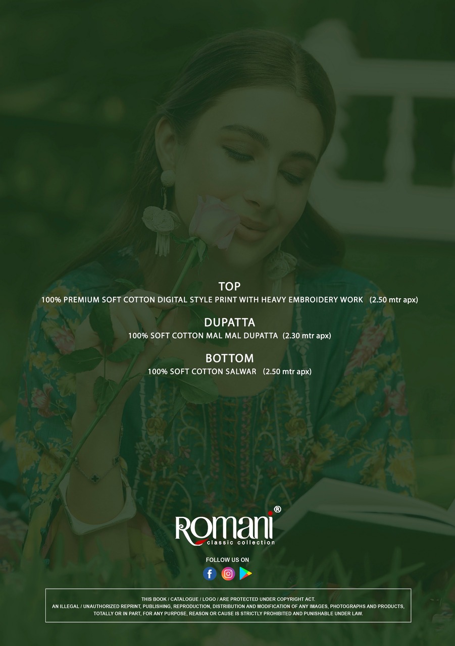 The Romani Needle Wonder Vol 11 Printed Embroidered Dress Material collection offers an excellent balance of modern design, comfort, and premium quality. With stylish prints and elegant embroidery work, this collection meets the expectations of customers seeking fashionable ethnic wear.
