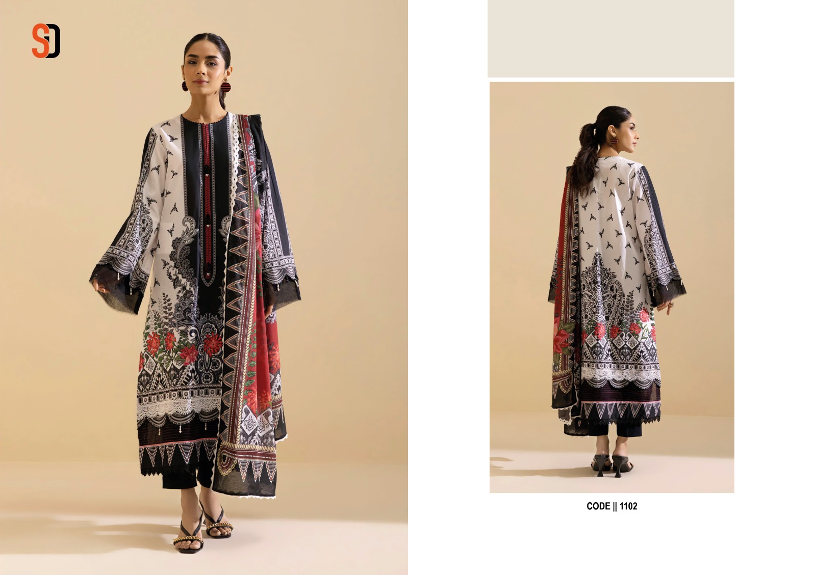 The Pakistani cotton dupattas complete each ensemble with grace and authenticity. The breathable texture and artistic details add an extra layer of charm, enhancing the overall appeal of the salwar suits and creating a captivating visual impact.
