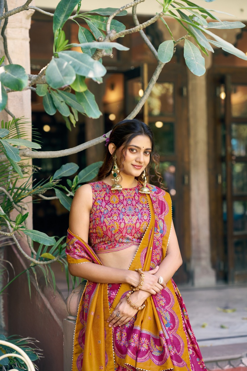 The Taraa L 1256 Tasar Silk Foil Printed Lehenga Choli Collection provides versatile styling possibilities for different occasions.