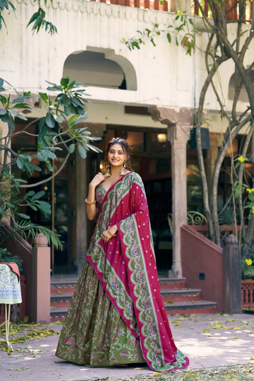 The Taraa L 1256 Tasar Silk Foil Printed Lehenga Choli Collection offers a perfect combination of luxury, comfort, and modern ethnic style. With elegant foil prints and premium Tasar silk fabric, this collection is designed to meet the expectations of fashion-conscious customers.