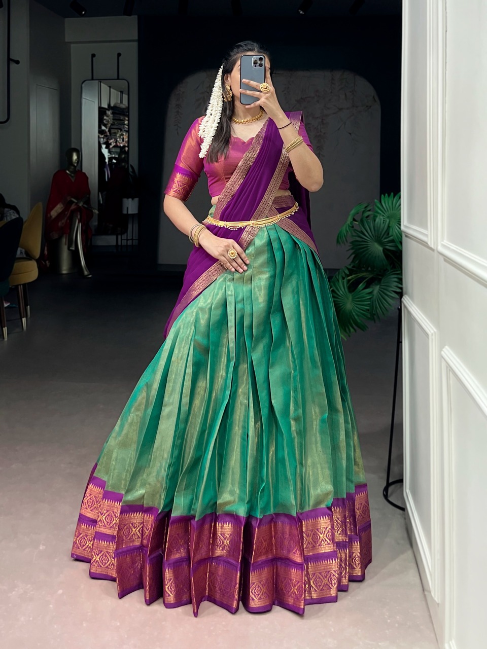 This collection is specially designed to reflect the cultural beauty of south indian lehenga choli for women, making it ideal for weddings, festive celebrations, and traditional ceremonies. The elegant weaving patterns and vibrant color combinations highlight the beauty of traditional silk craftsmanship. Businesses sourcing at competitive kanchipuram silk lehenga choli wholesale price rates can attract customers looking for luxurious and authentic South Indian outfits.