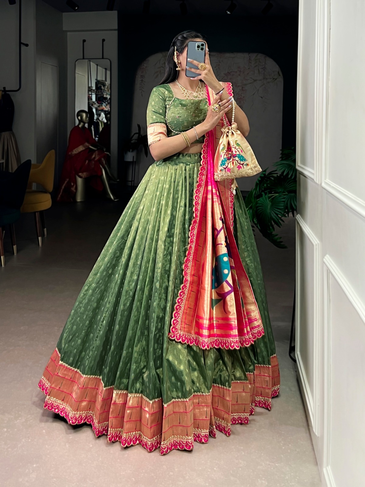 Buyers looking for Traditional Paithani Lehenga Choli Wholesale Price will appreciate how this fabric delivers a premium appearance without significantly increasing costs.