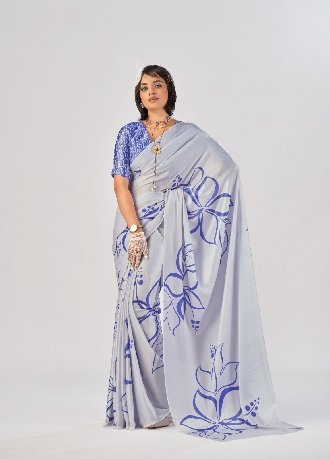 Saree/Blouse:- Satin Silk With Print | Length:- 5.50 Mtr Saree And 0.90 Mtr Blouse